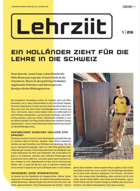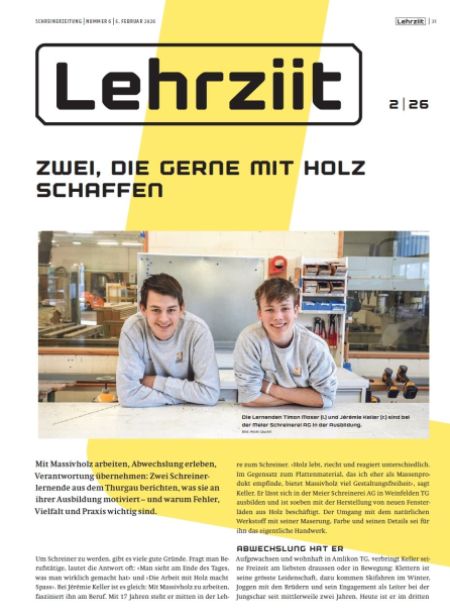 Die Seiten für Lernende in der Schreinerzeitung heissen neu Leerziit (ehemals Standby) und können an dieser Stelle auch digital angeschaut werden.